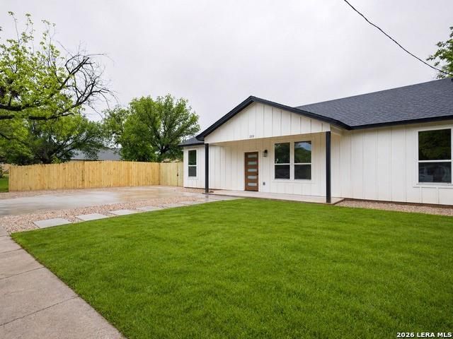 This newly constructed one-story home offers a Modern Farmhouse and thoughtful layout designed for comfortable living. The interior features an open floor plan with a spacious island kitchen, walk-in pantry, providing plenty of room for both everyday meals and entertaining. The home includes one large living area, an interior utility room, and a clean 3-bedroom, 2-bathroom design that maximizes functionality. With its contemporary finishes and efficient layout, this property offers an excellent opportunity to own a brand-new home built for today's lifestyle.