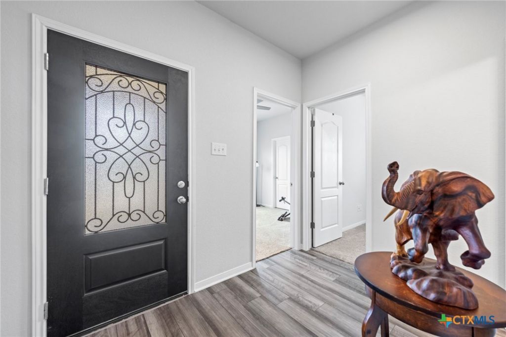 Built by Omega Builders in 2021, this beautiful 4-bedroom, 2-bath home is located in the desirable Cottonwood Creek Subdivision, just minutes from Troy ISD. The home features an open-concept layout with a spacious kitchen, large eat-in island, dining area, and comfortable living space. The kitchen includes stained cabinetry, an upgraded tile backsplash, and plenty of room for gathering. The primary suite offers added square footage, dual sinks, a full tub, and a separate tiled shower. Each bedroom includes carpet flooring, clean walls, and spacious closets. Additional upgrades include an expanded back porch, interior laundry room with custom shelving, and an extra-large shaded backyard perfect for relaxing or entertaining. Conveniently located with easy access to Temple, Belton, Waco, and Lake Belton.