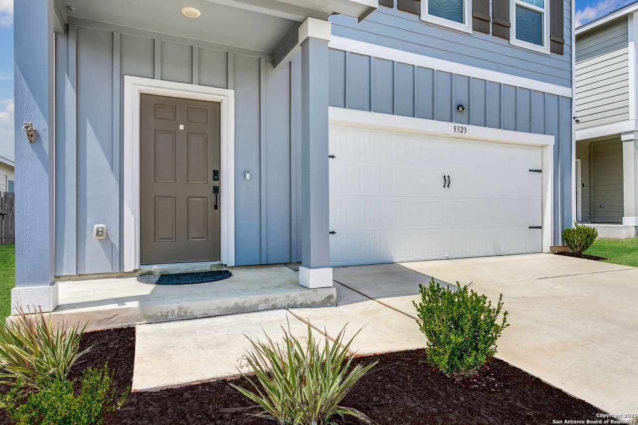 Welcome to 5323 Flying Hooves, a stunning 3-bedroom, 2.5-bathroom home offering 1,901 square feet of thoughtfully designed living space in the desirable Sutton Farms community, built by Starlight Homes in 2023. This home greets you with cheerful sky-blue exterior paint, a charming covered front porch, and a warm welcome into a bright and open main floor with soaring 9 ceilings. The entryway includes a functional mudroom space and a convenient powder bath, flowing seamlessly into a spacious living area and open-concept kitchen. The kitchen is a dream for home chefs, featuring bright white cabinetry, granite countertops, stainless steel appliances, a walk-in pantry, a stylish coffee bar, and a large island perfect for entertaining. Upstairs, enjoy a versatile loft space-perfect for a second living area or home office-alongside a convenient utility room and all three spacious bedrooms. The upstairs master suite offers a peaceful retreat with a walk-in closet and a private bath featuring a walk-in shower. Bedroom 2 is a spacious 16x18 with its own walk-in closet, while Bedroom 3 is an impressive 18x18, ideal for guests or growing families. Durable LVP flooring adds style and comfort to the main floor. Step outside to a 10x10 patio slab overlooking a large, flat, fenced backyard-perfect for outdoor living. Enjoy the community park and playground nearby, and benefit from zoning to highly regarded East Central ISD schools including Sinclair Elementary, Legacy Middle, and East Central High School. With a 2-car garage and meticulous care throughout, this move-in ready gem wont last long!